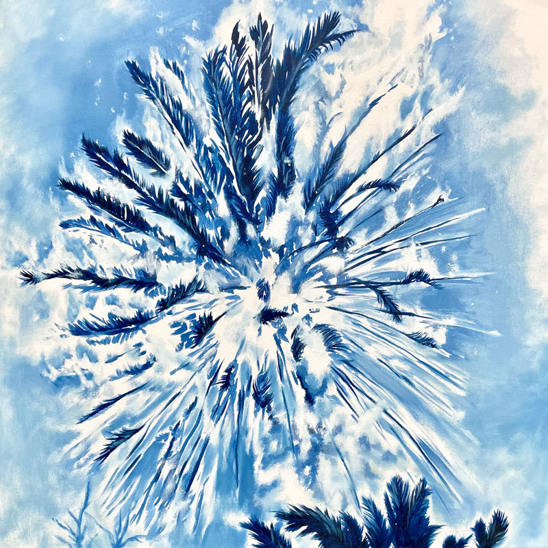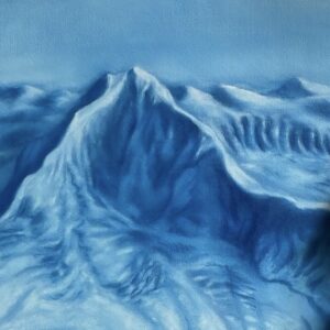Für Jovita Majewski hat die Farbe Blau die Eigenschaft, Entfremdung, Abstraktion und Distanz zu schaffen. Das gibt ihren Werken eine doppeldeutige Tiefe. In der Werkreihe „convergences“ zeigt Jovita Majewski eine ästhetisch vollendete Übereinstimmung von Körperstrukturen mit Erd-, Wasser- und Himmelsphänomenen. Was ist was? Was ist Mensch, was irdische Oberfläche? Auch hier schafft die Farbe Blau eine Entfremdung des Dargestellten. Kunst, die auf den ersten Blick rein ästhetisch wirkt, erhält eine tiefere Dimension, ist wie ein „blauer Appell“ der Künstlerin, Mensch und Natur als Symbiose wahrzunehmen und somit nachhaltig und konsequent gegen den Klimawandel einzutreten.