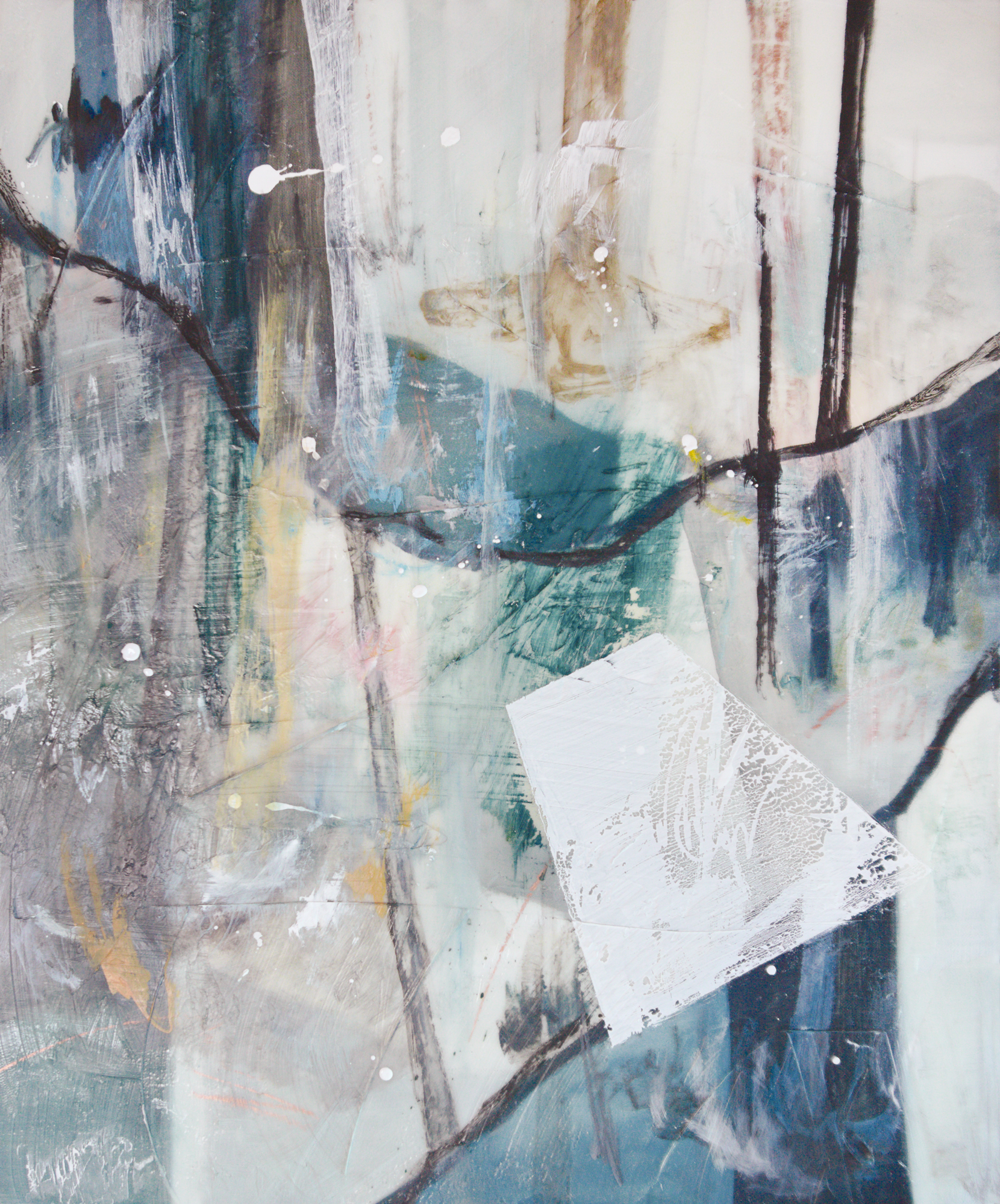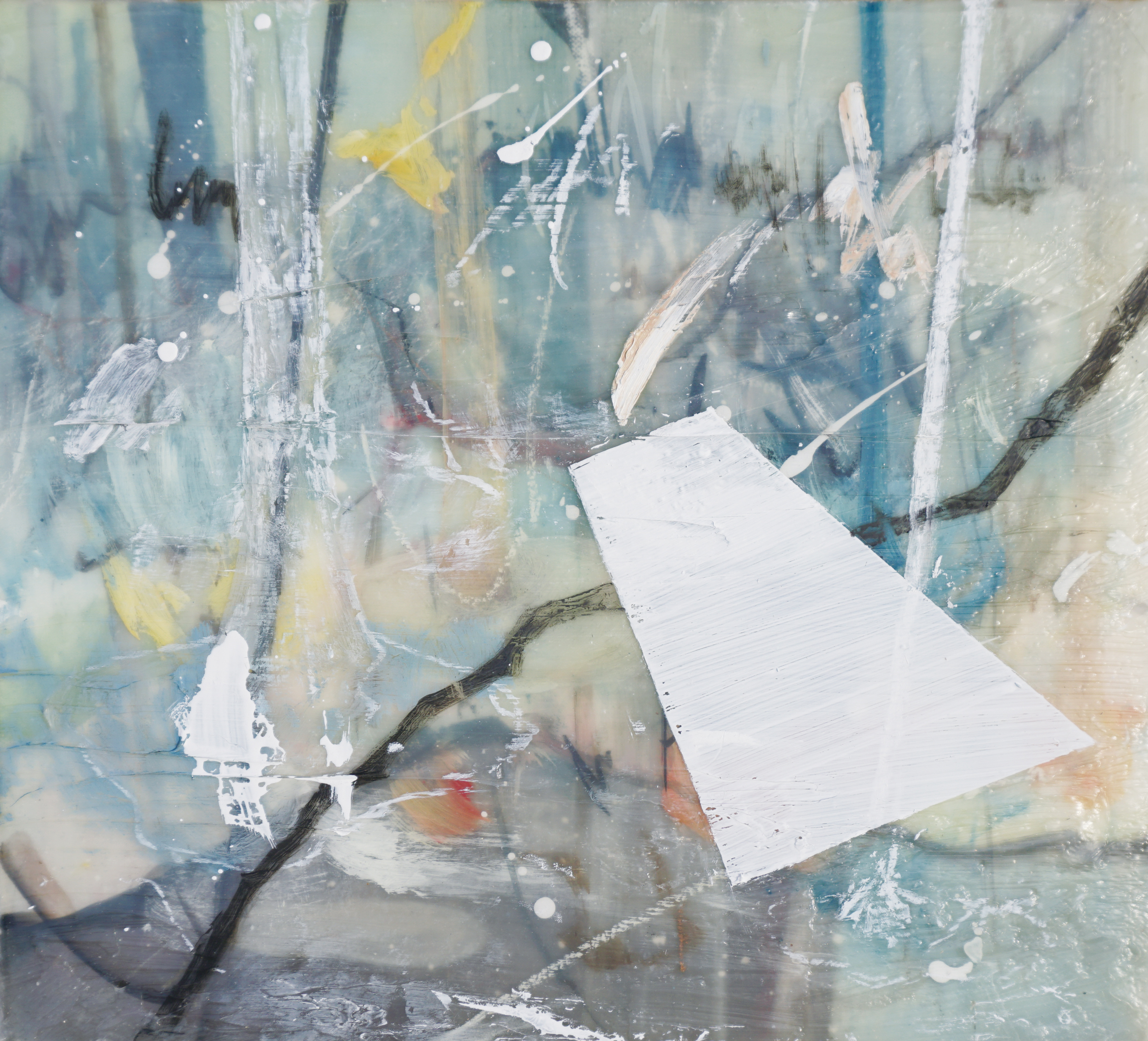Der individuelle Wald in mir mit Schnee, Mischtechnik auf Leinwand, 100 x 100 cm, 2015