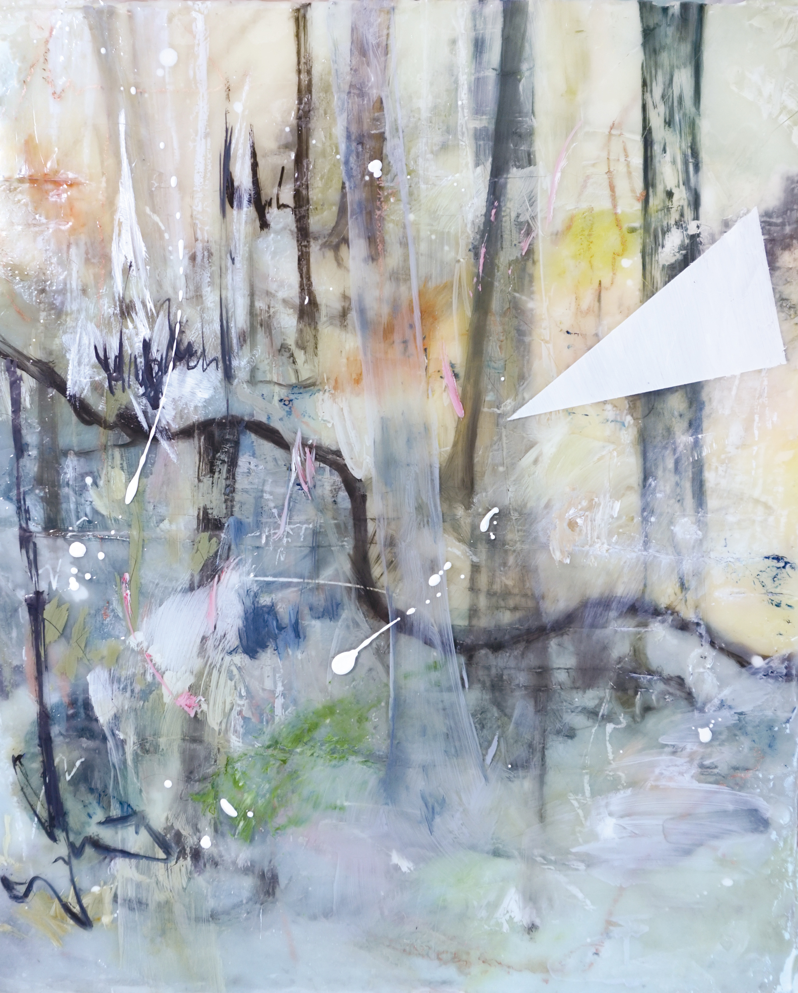 Raum: Wald, Licht Schnee und Regen, Acryl auf Papier, 70 x 70 cm, 2013