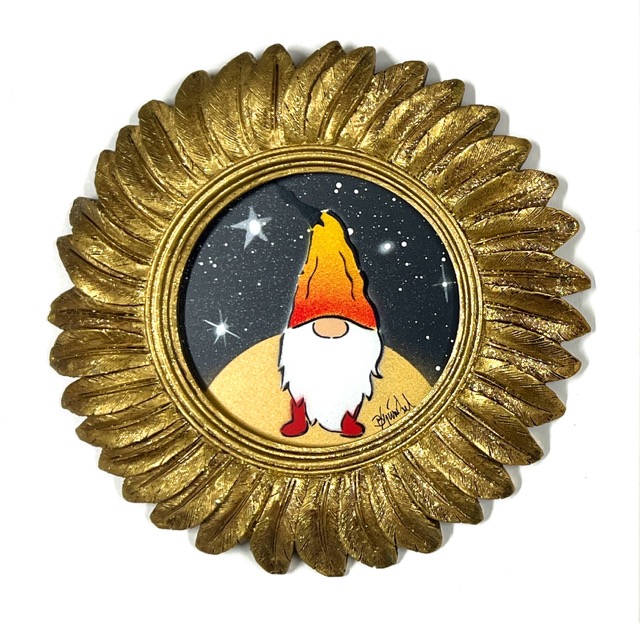Bananenwichtel, Spraylack auf Holz, Durchmesser 15 cm, 2023, o. R. € 590,- (inkl. MwSt), m. R. € 640,- (inkl. MwSt)