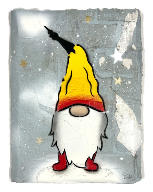 Bananenwichtel, Spraylack auf Plakatwand, 26 x 19,5 cm, WVZ 2718, 2023, € 1.750,- (inkl. MwSt)