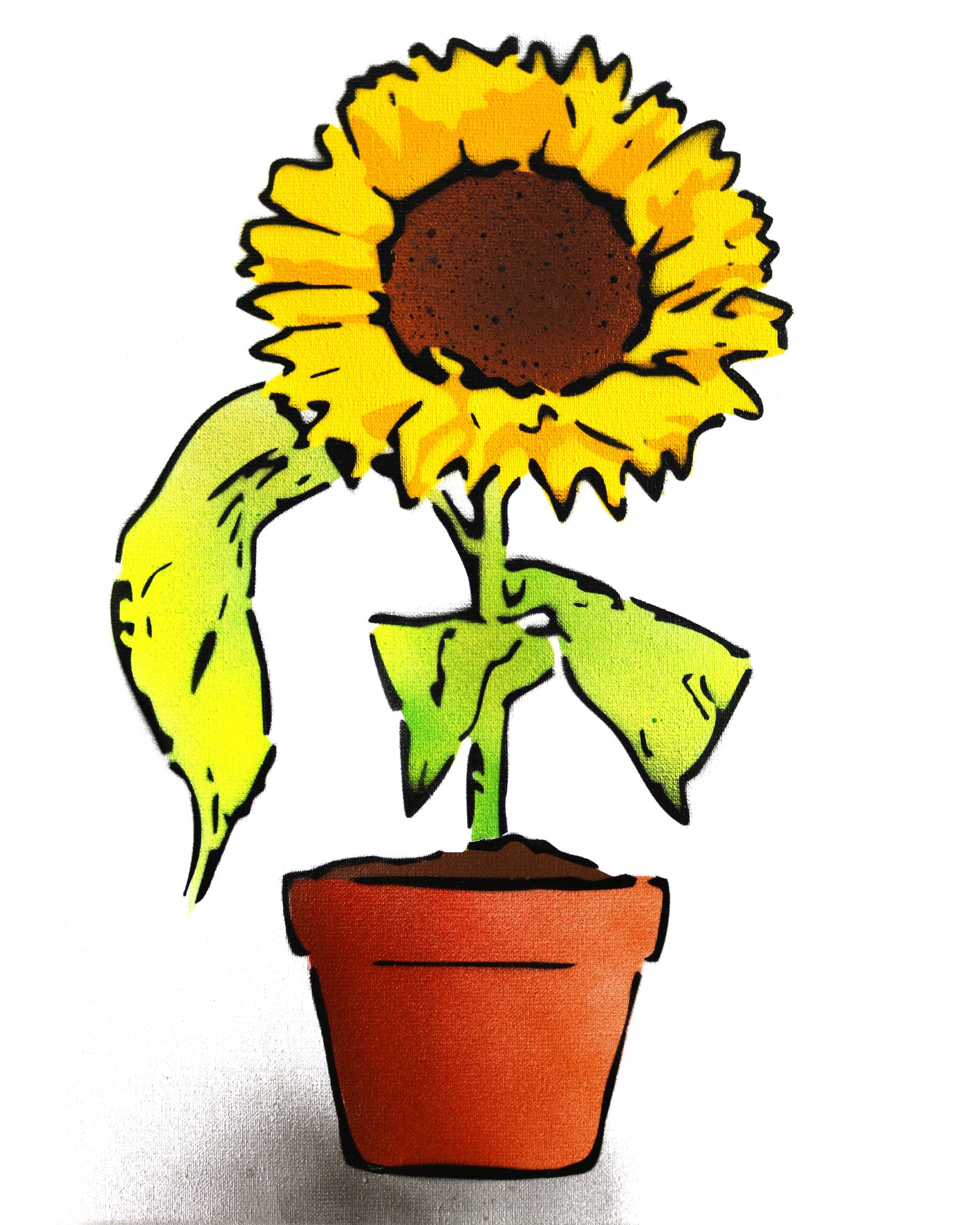 Sonnenblume, Metamorphose der Spraybanane, Spraylack auf Leinwand, 50 x 40 cm, 2024, € 1700,- (inkl. MwSt.), ab 01.01.2025: € 1.750,- (inkl. MwSt)